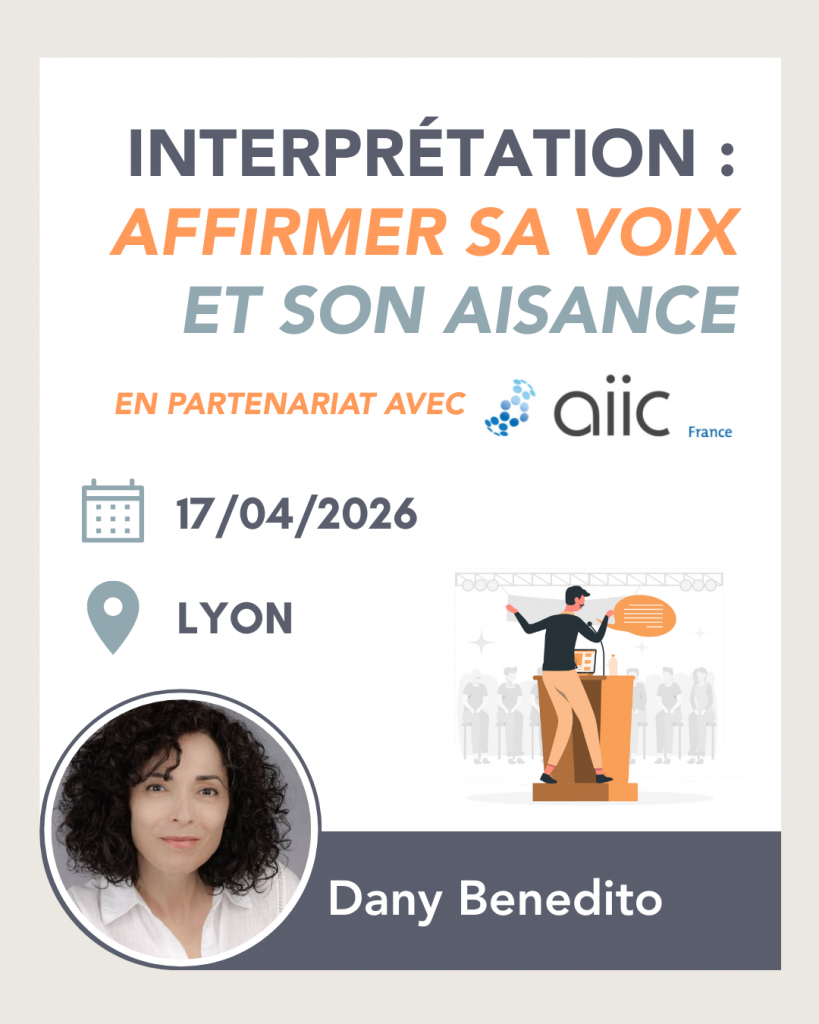 En partenariat avec l’AIIC France (Association internationale des interprètes de conférence). Les interprètes, qu’ils soient en exercice ou en formation, mobilisent intensément leur voix, leur souffle et leur corps dans un cadre professionnel souvent exigeant. Pour interpréter avec justesse, fluidité et conviction, il ne suffit pas de comprendre et de traduire : il faut aussi savoir gérer sa respiration, poser sa voix, maîtriser sa diction et gagner en aisance à l’oral.