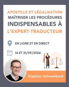 Apostille, légalisation consulaire ou certification matérielle – cette formation a pour objectif de clarifier ces mécanismes et de permettre aux participants de comprendre leurs spécificités, d’identifier les exigences selon les pays et les documents, et d’accompagner leurs clients avec précision pour éviter les pièges administratifs.